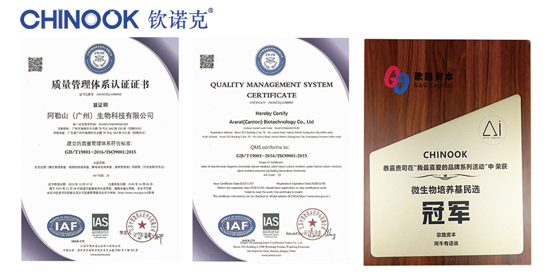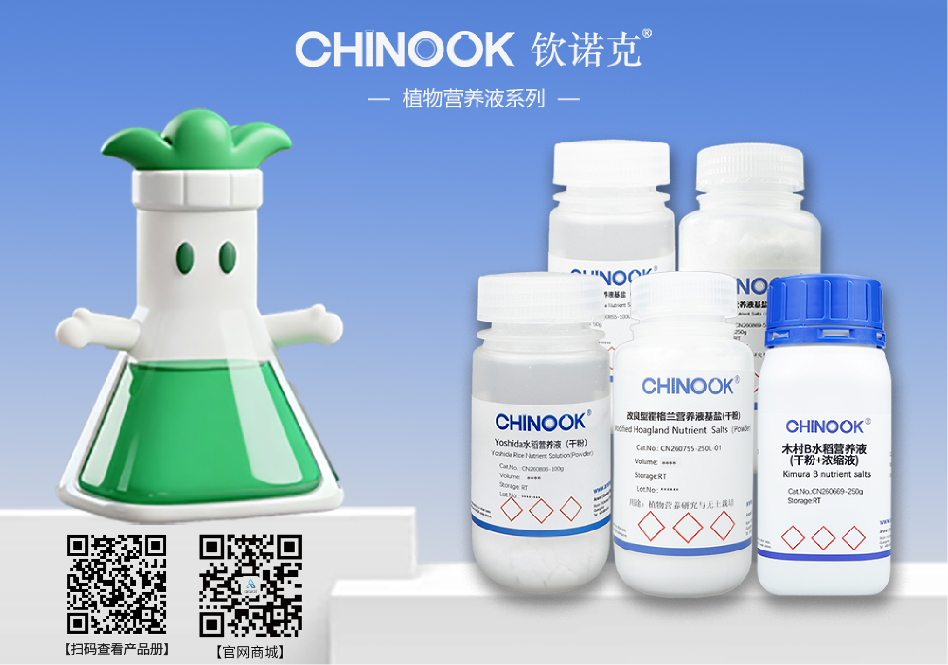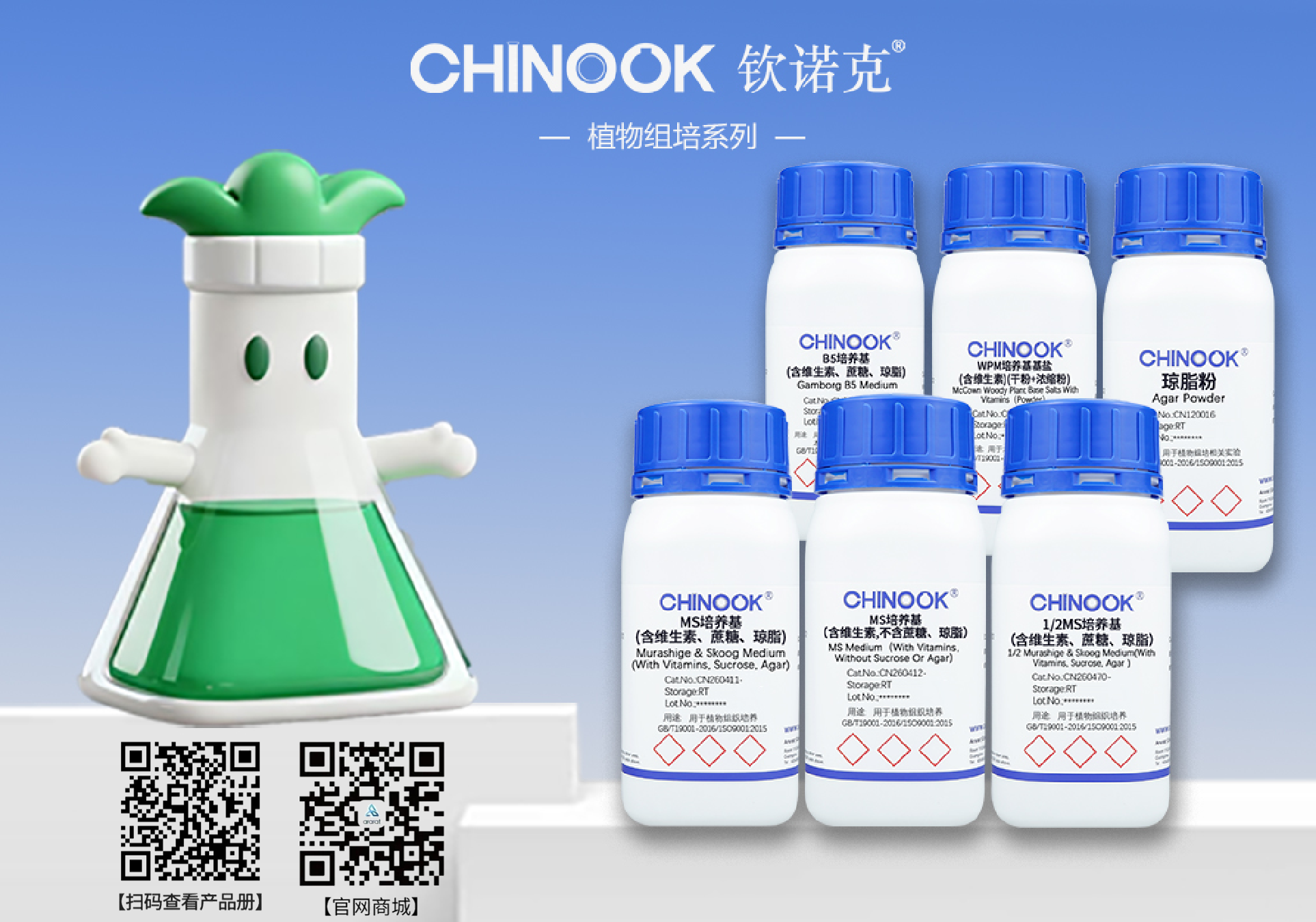 CHINOOK(钦诺克)为阿勒山(广州)生物科技有限公司旗下品牌,深耕植物组织培养基、植物营养液、微生物培养基等系列产品,覆盖科研、生产全领域,提供无门槛定制服务,精准匹配科研需求!