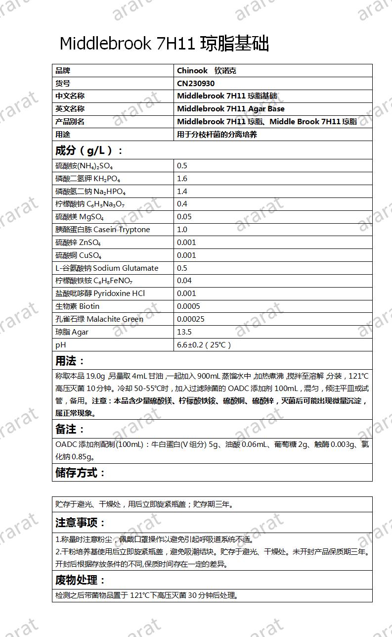 英文名称: Middlebrook 7H11 Agar Base