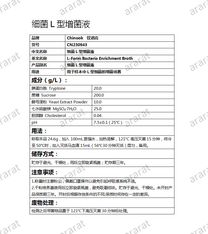 英文名称: L-form bacteria Enrichment Broth