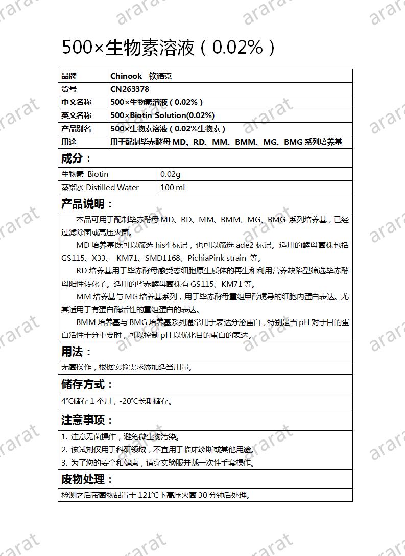 英文名称: 500×Biotin Solution