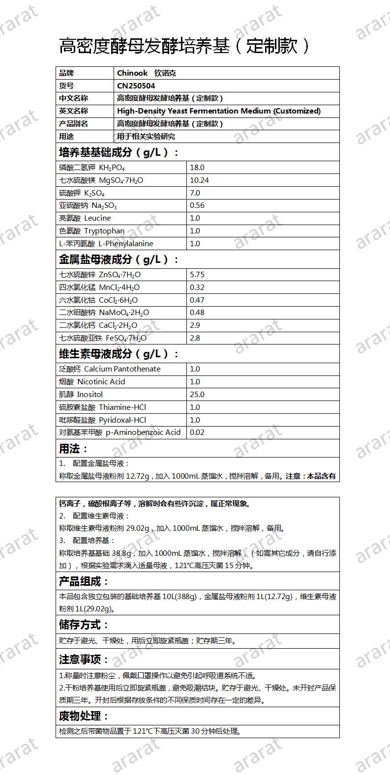 英文名称: High-Density Yeast Fermentation Medium (Customized)
