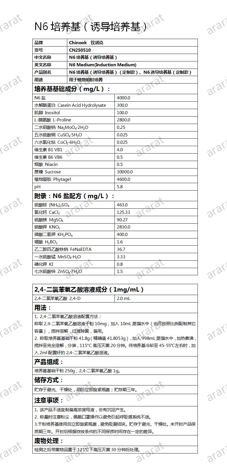 N6培养基(诱导培养基)