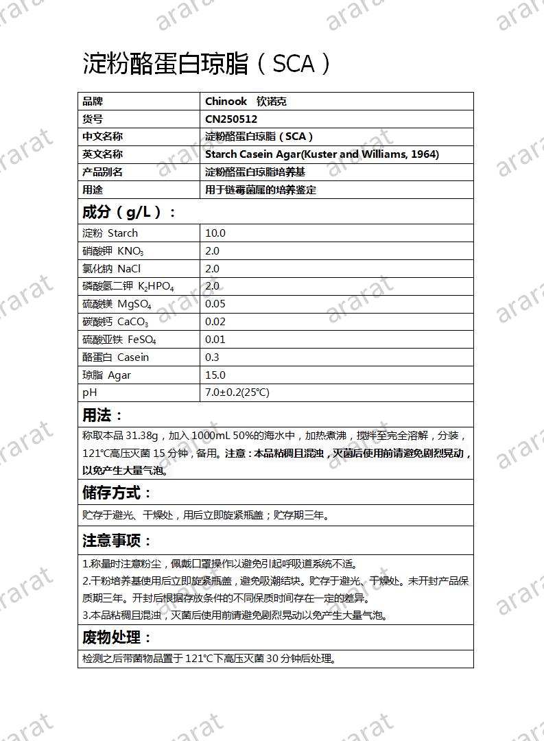 英文名称: Starch Casein Agar(Kuster and Williams, 1964)