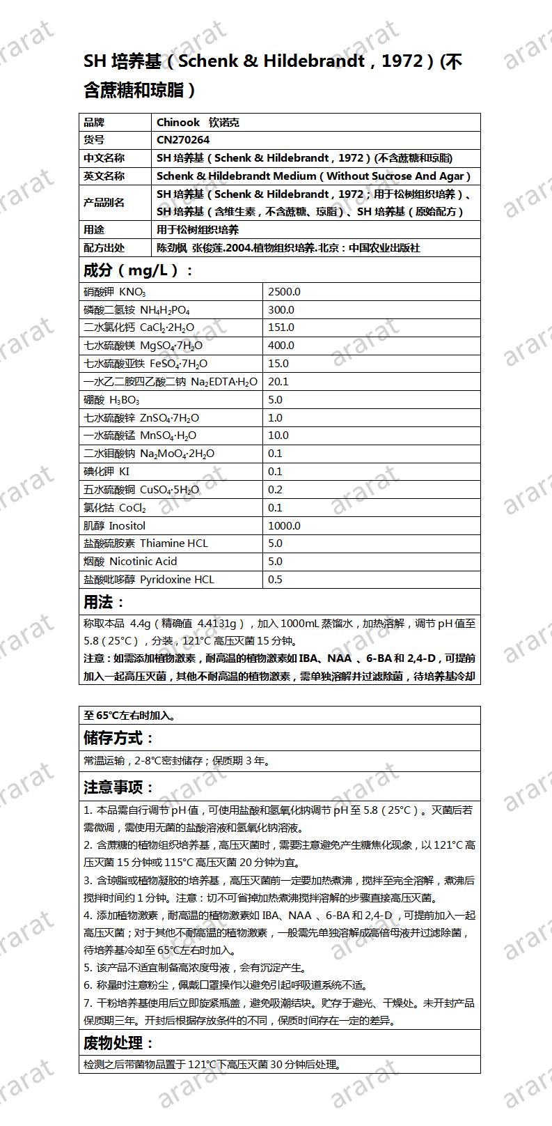 英文名称: Schenk & Hildebrandt Medium(Without Sucrose And Agar)