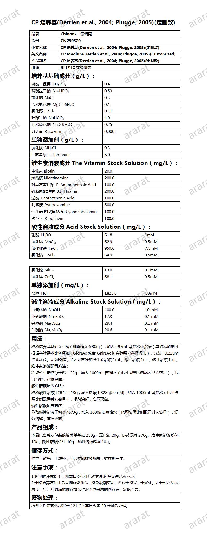 英文名称: CP Medium(Derrien et al., 2004; Plugge, 2005)(Customized)