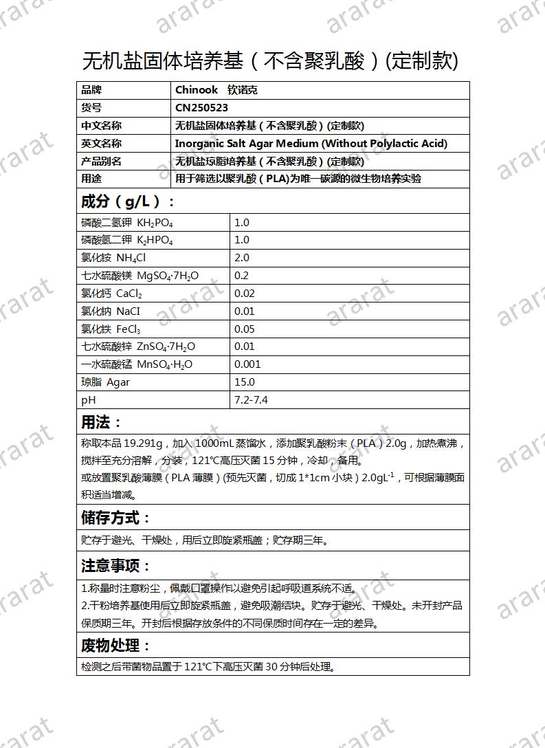 英文名称: Inorganic Salt Agar Medium (Without Polylactic Acid)