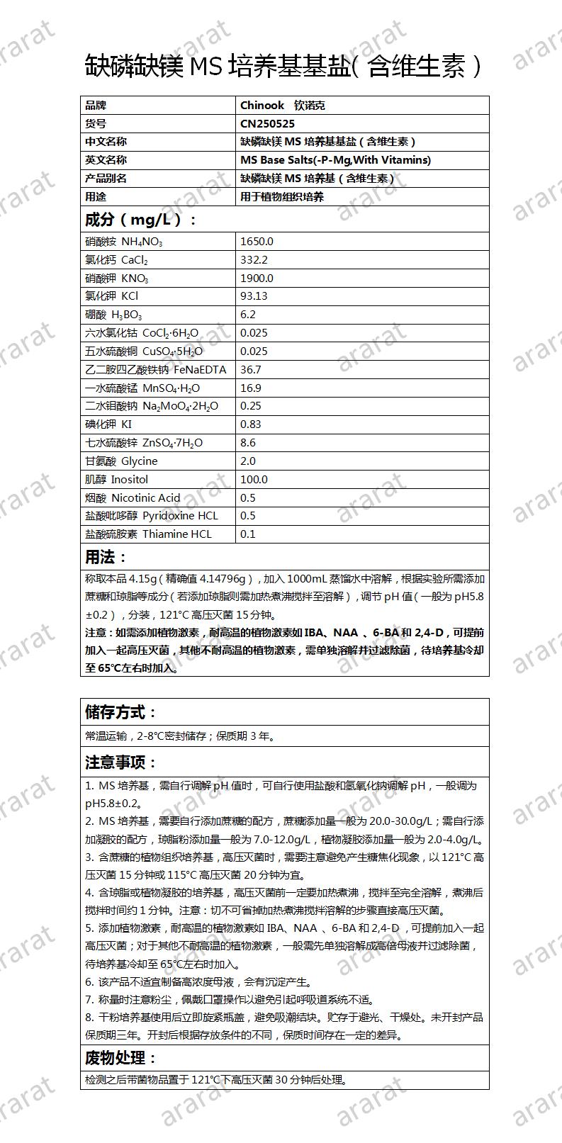 缺磷缺镁MS培养基基盐(含维生素)