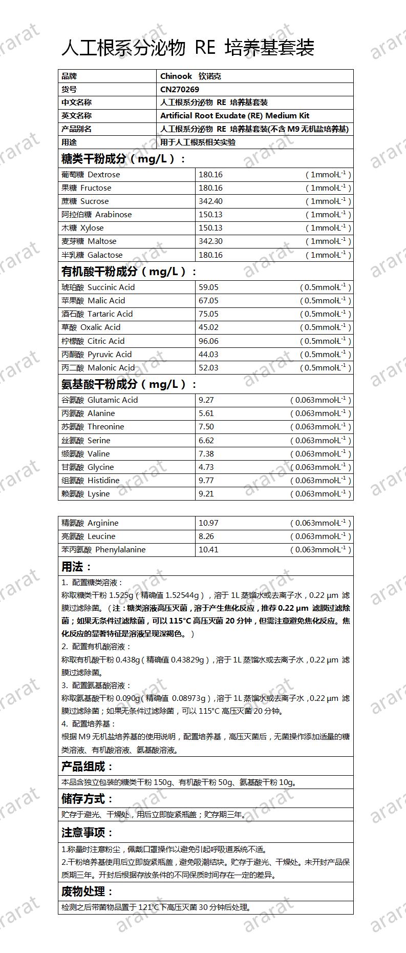 英文名称: Artificial Root Exudate (RE) Medium Kit