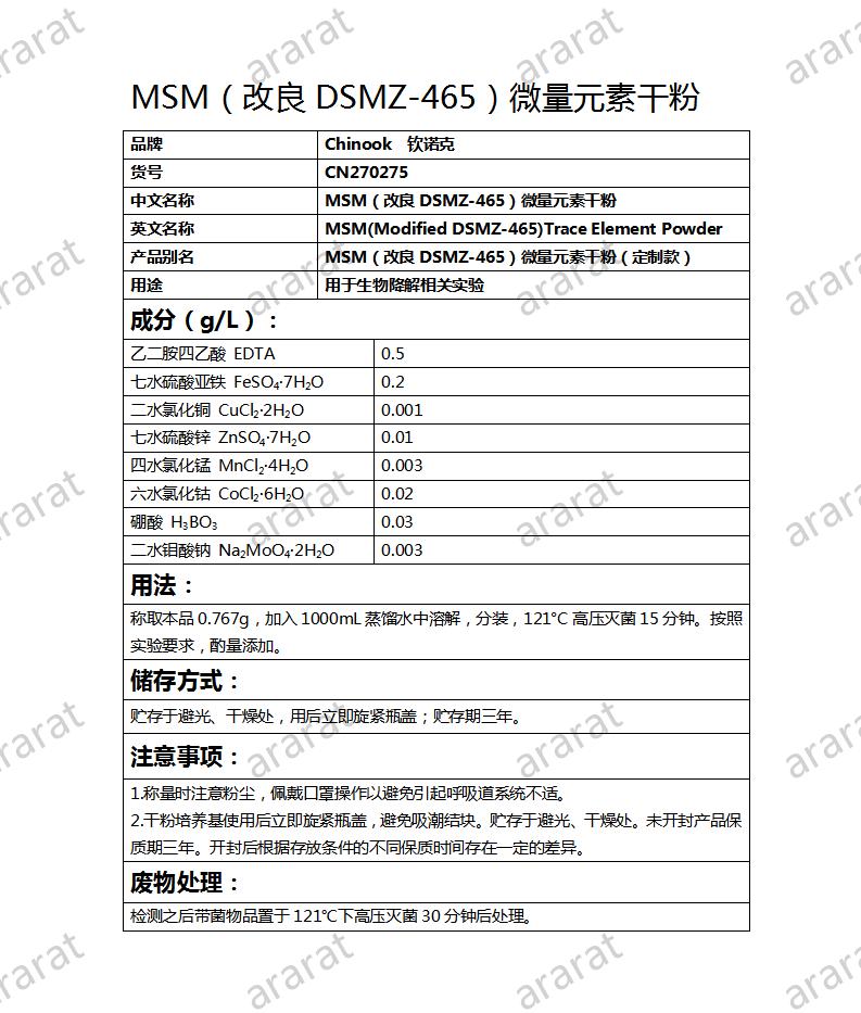 英文名称: MSM(Modified DSMZ-465)Trace Element Powder