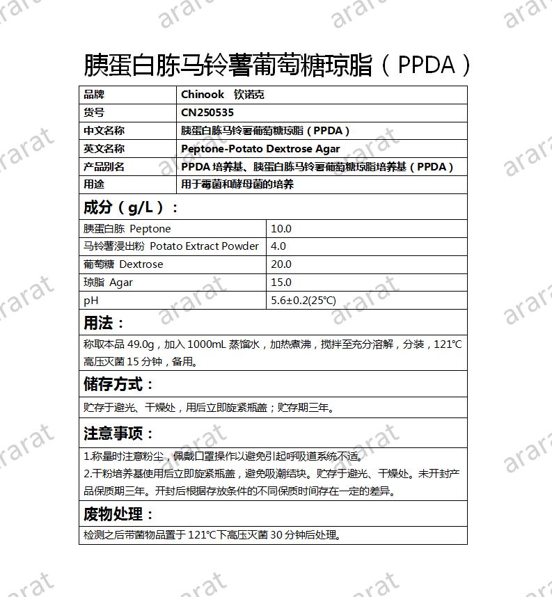 胰蛋白胨马铃薯葡萄糖琼脂(PPDA)
