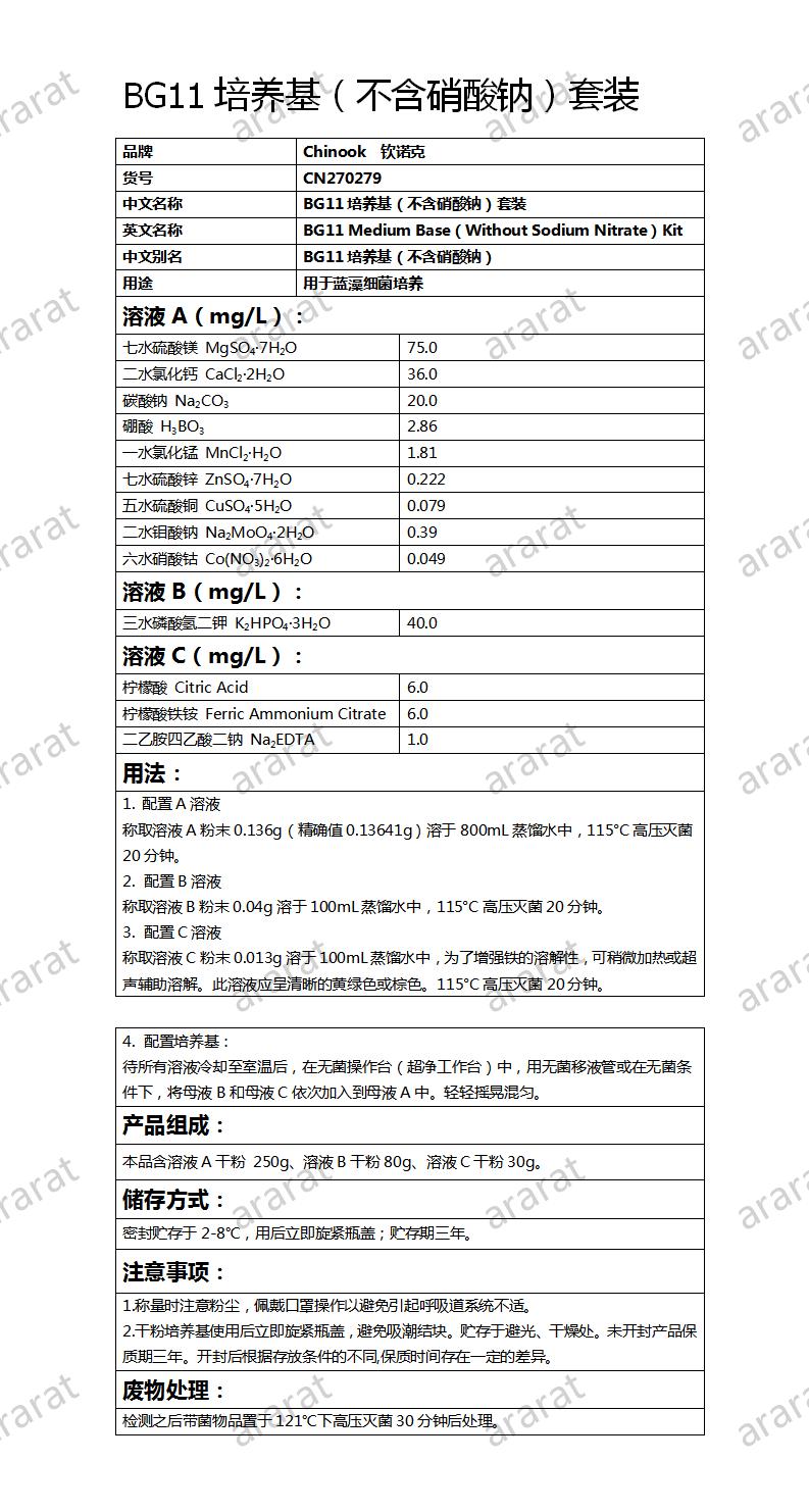 英文名称: BG11 Medium Base(Without Sodium Nitrate)Kit