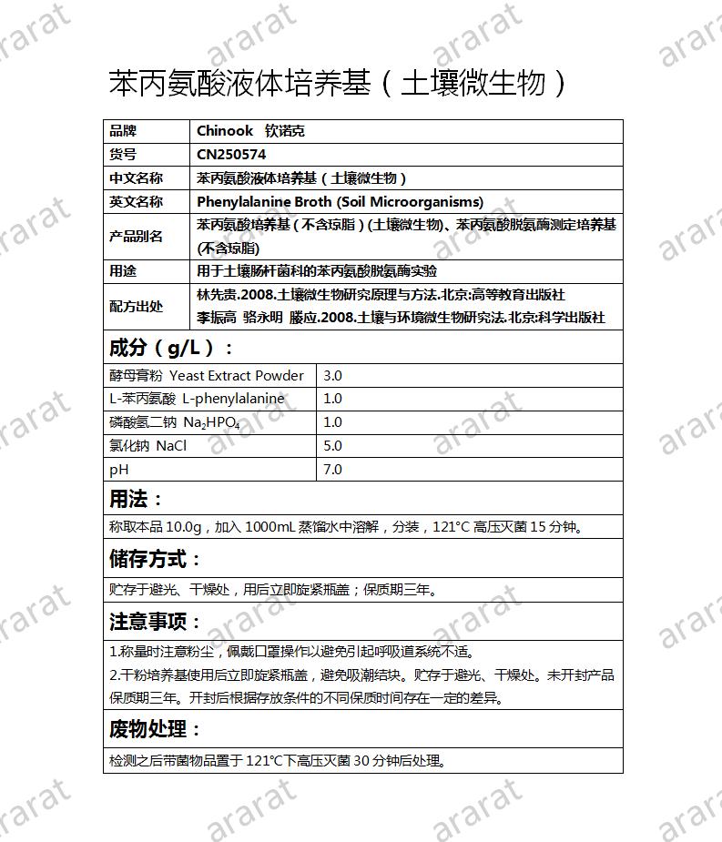 英文名称: Phenylalanine Broth (Soil Microorganisms)