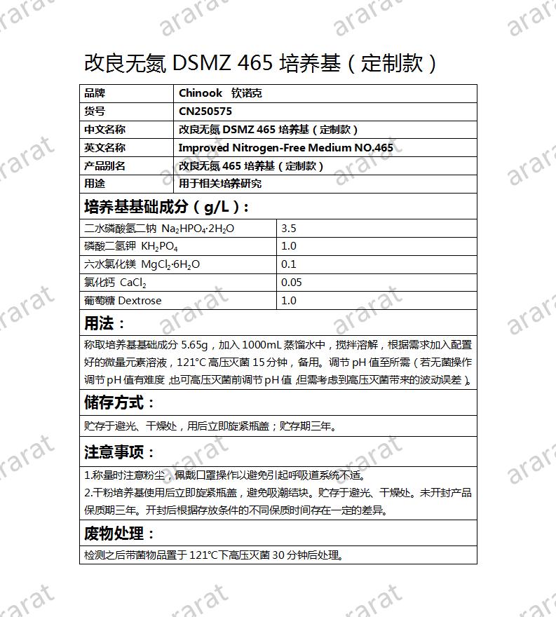 英文名称: Improved Nitrogen-Free Medium NO.465