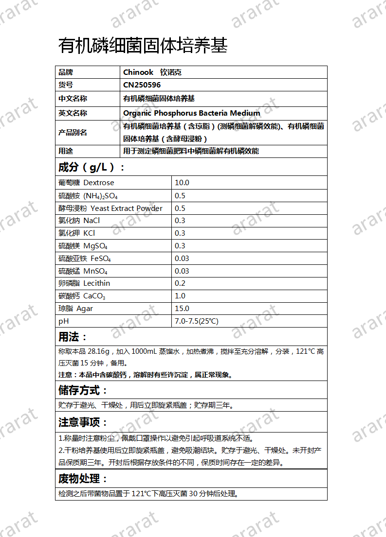 英文名称: Organic Phosphorus Bacteria Medium